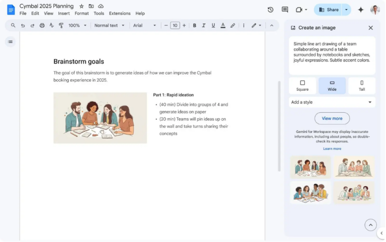 A principios de este año, Google Docs añadió una herramienta de IA para crear imágenes de portada de lado a lado mediante Gemini. Ahora, Google amplía esta función para permitir a los usuarios crear imágenes de alta resolución directamente en los documentos.