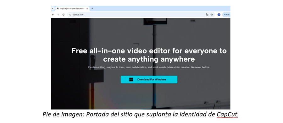 CapCut es una app para editar videos que a nivel mundial tiene aproximadamente 300 millones de usuarios activos al mes y registra cerca de mil millones de descargas, sobre todo entre usuarios de TikTok. ESET, alerta sobre un nuevo engaño en el que aprovechan la popularidad de la aplicación para la creación de sitios falsos, que se hacen pasar por el oficial, y así distribuir un falso instalador que infecta con malware.