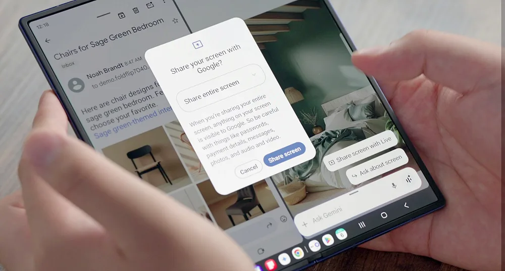 Diseñado como un agente multimodal, One UI 8 integra la multitarea en pantalla grande con herramientas que interpretan texto, voz e imagen. Con una cámara potenciada por IA y seguridad integrada, el Galaxy Z Fold7 busca funcionar como un asistente personal. La plataforma Gemini Live ha sido mejorada con IA multimodal, permitiendo interactuar con el dispositivo mediante preguntas contextuales, o compartiendo la pantalla o la cámara para obtener información instantánea. La función Circle to Search permite obtener resultados inmediatos al rodear un elemento en pantalla.