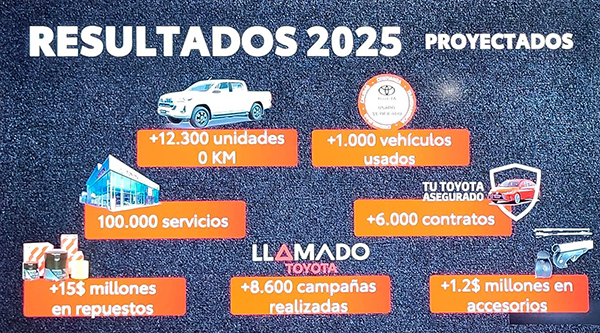 D’Abrizio destacó que si bien es fácil decir cuántos vehículos se vendieron, lo difícil es lograr los otros indicadores de calidad y servicio que respaldan esa venta. El cierre proyectado para 2025 apunta a 12.300 unidades 0 km vendidas. En el área de servicio, se habrán atendido 100.000 unidades en la red. Además, se ha apoyado a más de 1.000 personas en la comercialización de su vehículo usado, y el programa Toyota Asegurado, en alianza con Vertical Seguro y Seguros Caracas, ha ofrecido una prima muy competitiva con garantía de reparación exclusiva en la red de concesionarios.